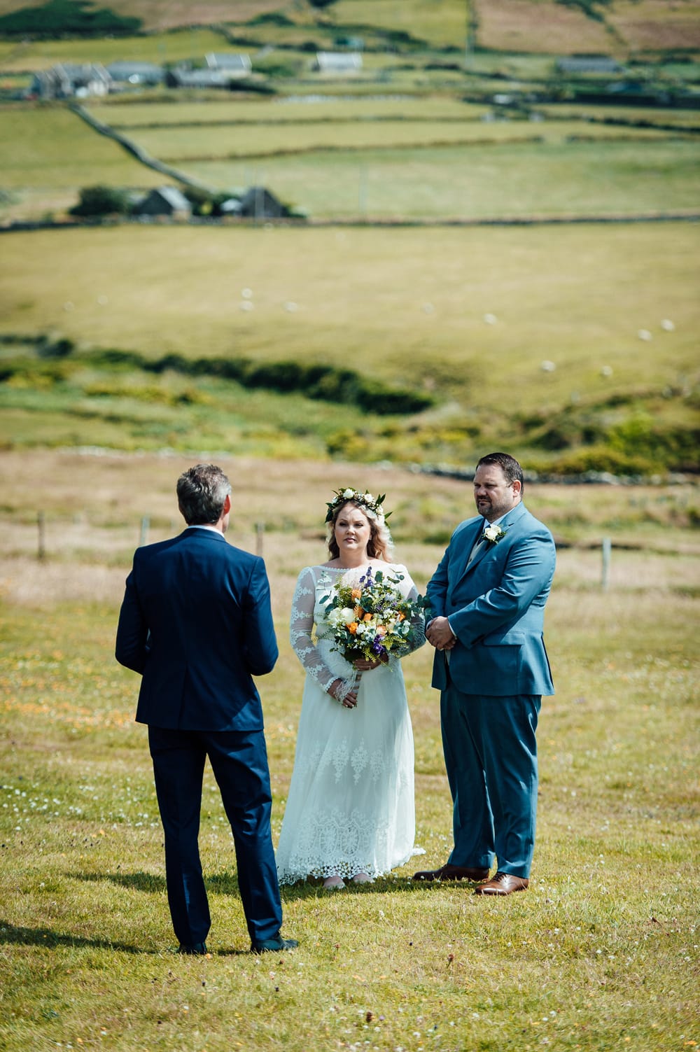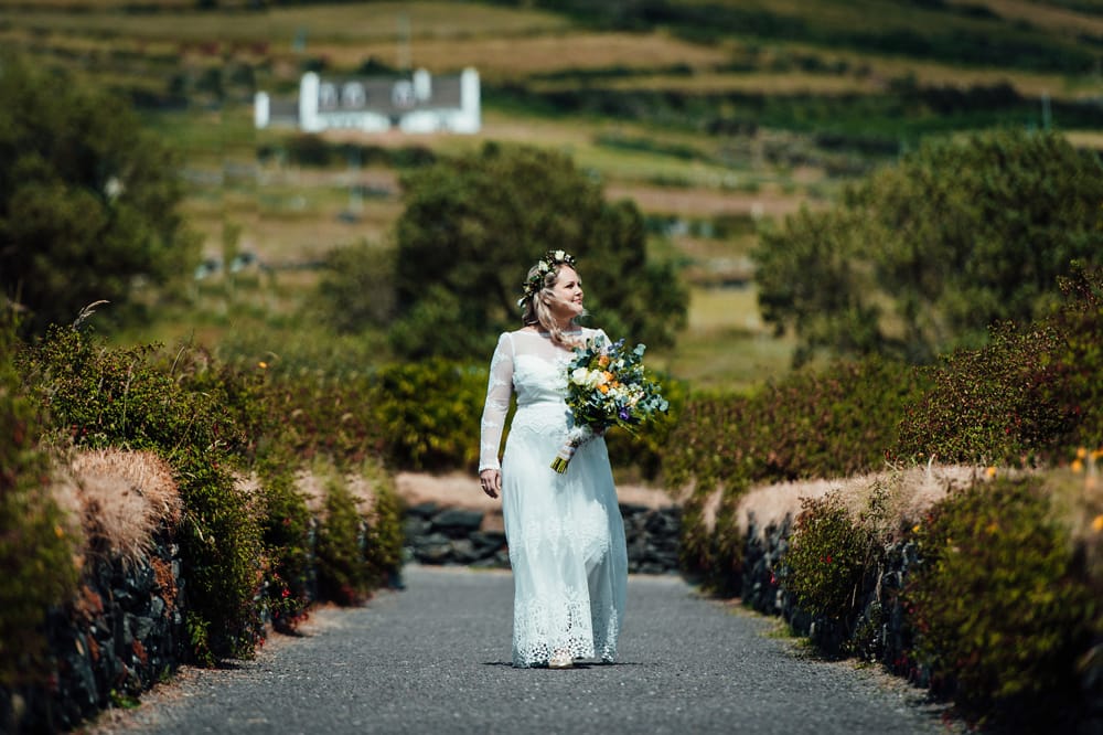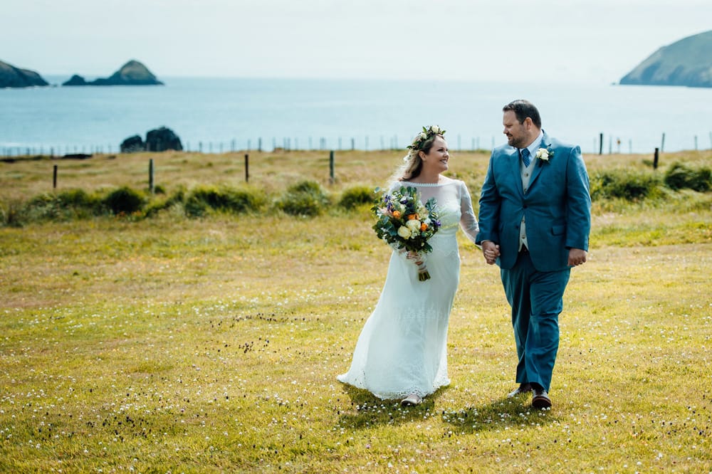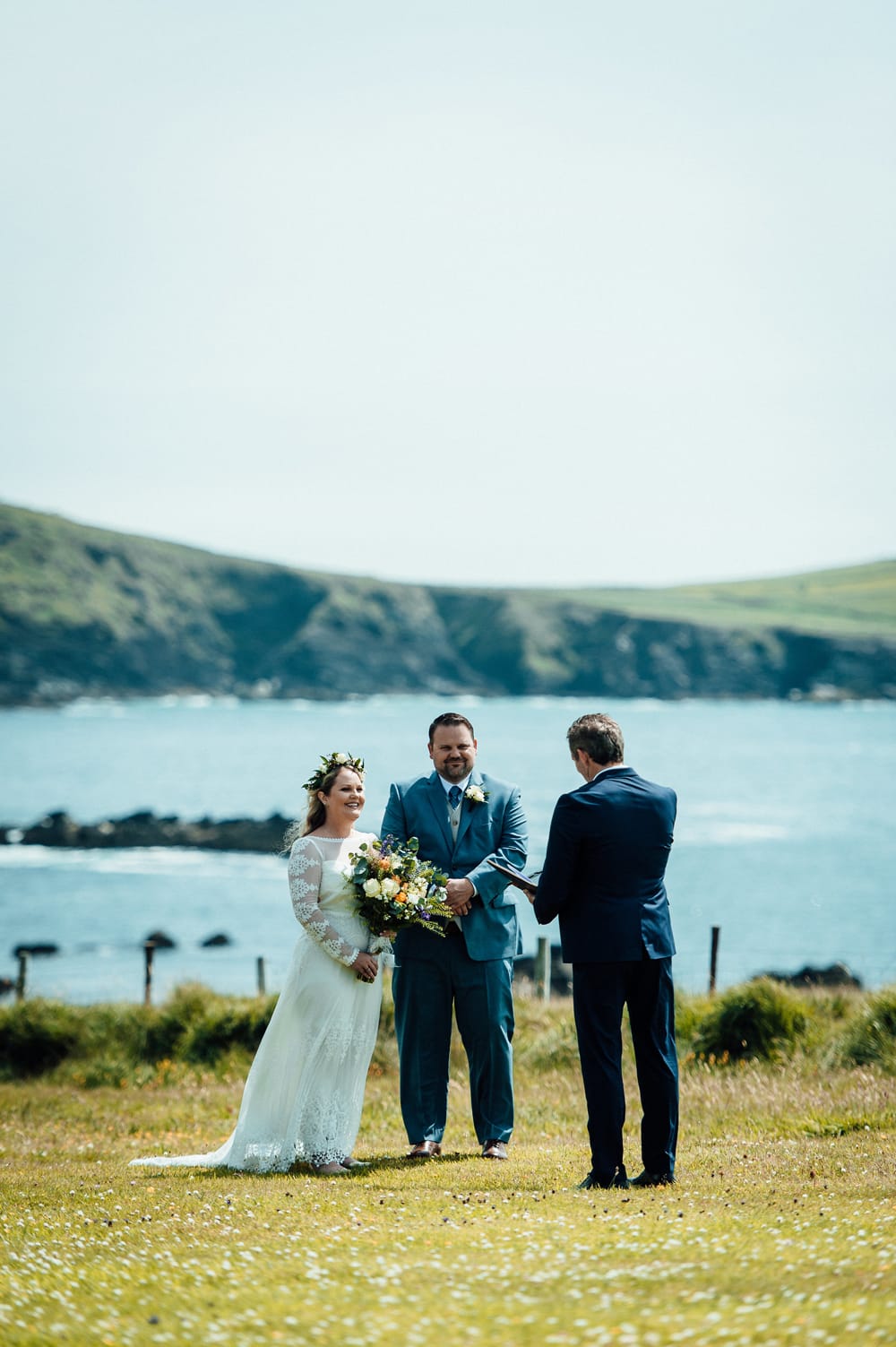 Nerijus from K Photography didn’t disappoint with his simply amazing photos, scroll down to see them! Sheehy’s from Dingle town created Candace’s wild and wonderful bouquet, while Brian Hade from Civil Ceremonies conducted a beautiful ceremony outdoors at the Blasket Centre with the Great Blasket itself in the background, lest we forget the cake from the Kerry Cake Company, the next step between the couple and their home in the United States of America.