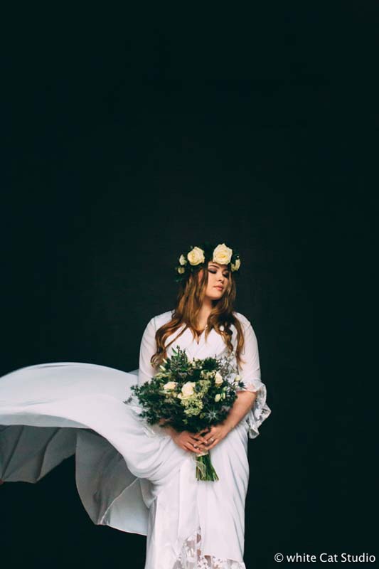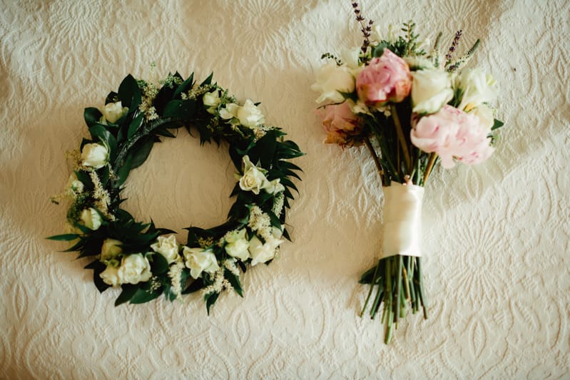 Ashton’s bouquet and head wreath Photo by White Cat Studio