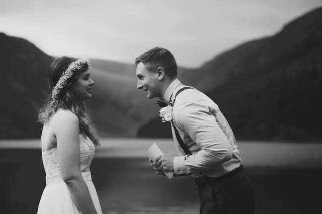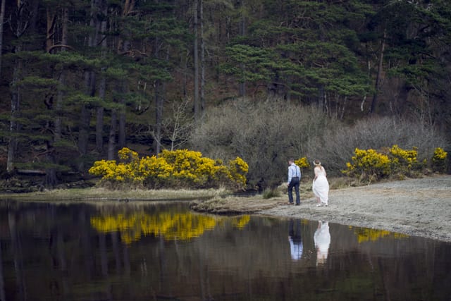 What I came up with was for them to go hiking up mountains in the beautiful and historic area around historic Glendalough, Co Wicklow the day before their ceremony but for their wedding, have their ceremony on the edge of the upper lake so they still have the feeling of seclusion and mountains {without exhausting the rest of us}. A lakeside wedding in the Wicklow mountains it was!