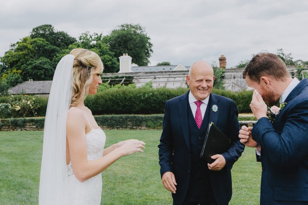 It was an emotional first look for both of them before relaxing into the giggles at many parts of the ceremony that they created together.