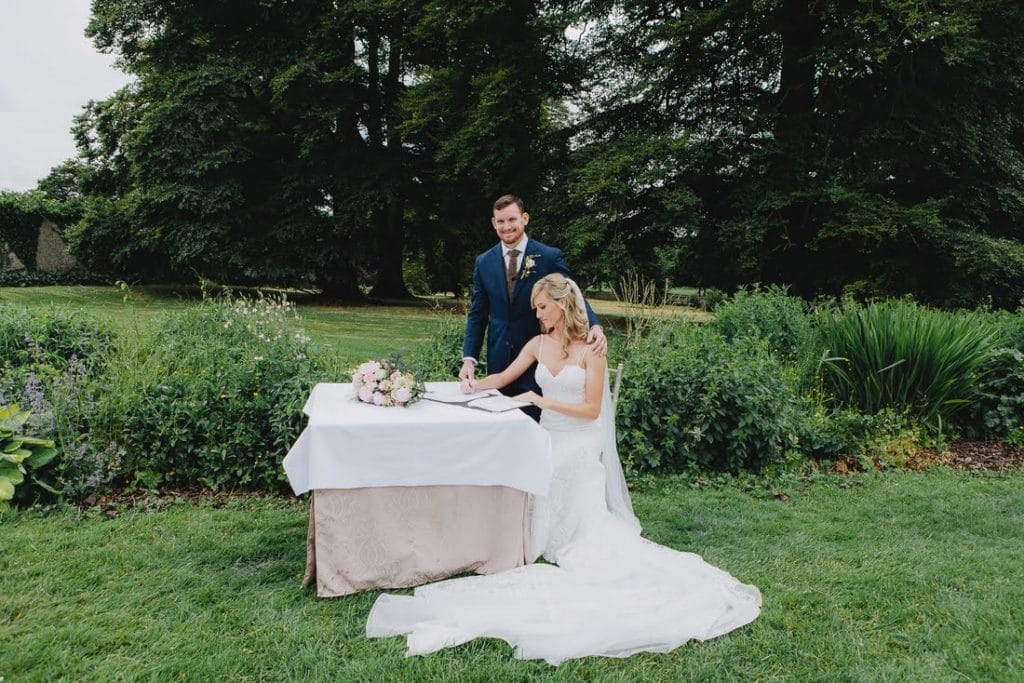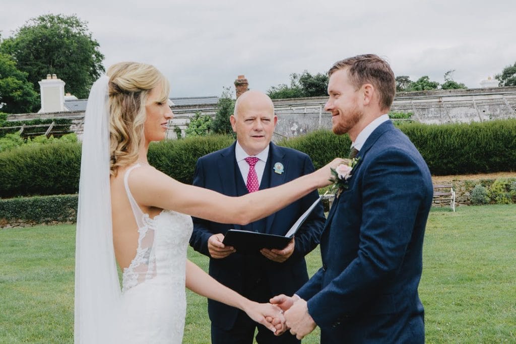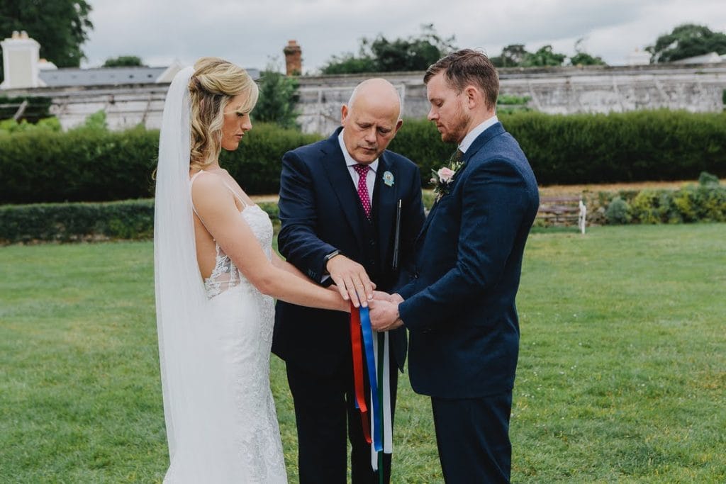 Lacey loved the idea of using Irish traditions, historic locations and a pub HAD to play a part in the day. Keeping all of that in mind, we planned a hand fasting with Spiritual Ceremonies for the couple in the gorgeous gardens at Mount Juliet Estate.