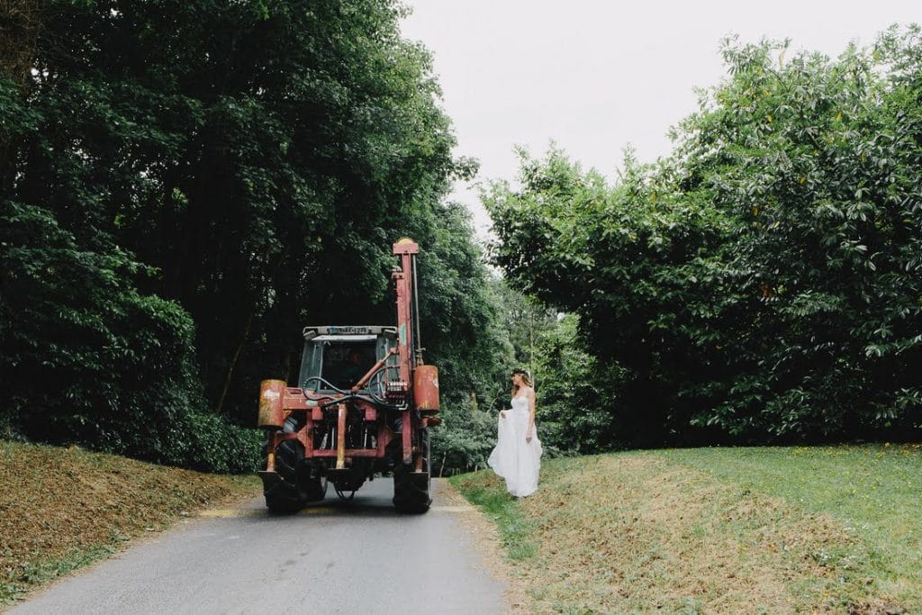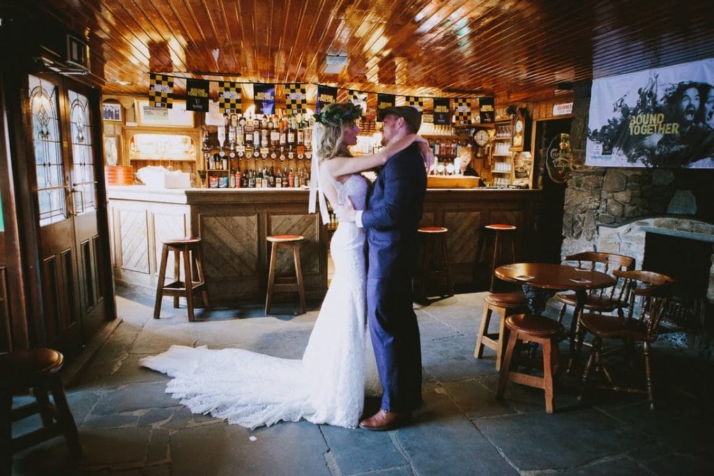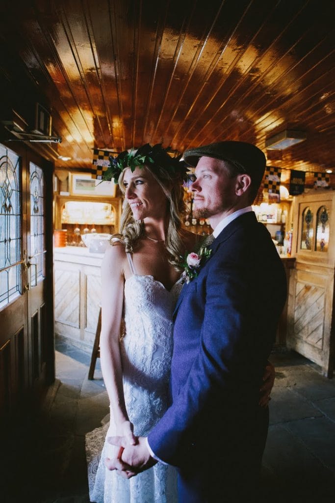 A very fit and athletic couple, Lacey carried herself elegantly throughout outdoor ceremony in her lace dress and chapel length veil before changing into a floral crown for their pub trip.