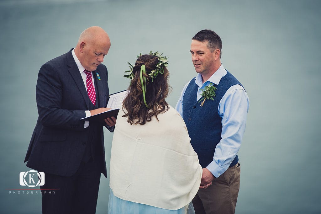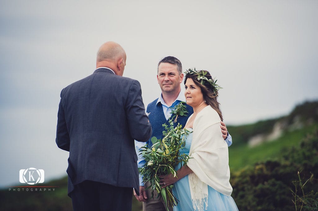 The couple stayed at the Clontarf Castle Hotel. Early in the morning, Susan was taken for hair and makeup around 11:00 AM, allowing Sean time to prepare. They then headed to the cliff to meet Tom Farrell of Spiritual Ceremonies, who officiated their wedding in Ireland on a clifftop location on a clear, beautiful day.