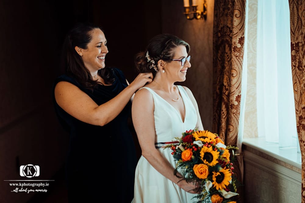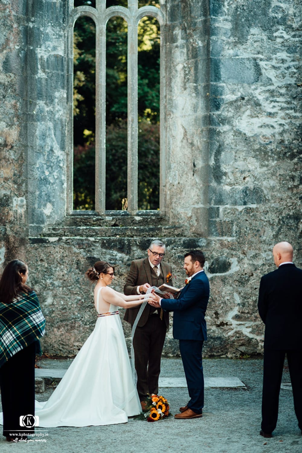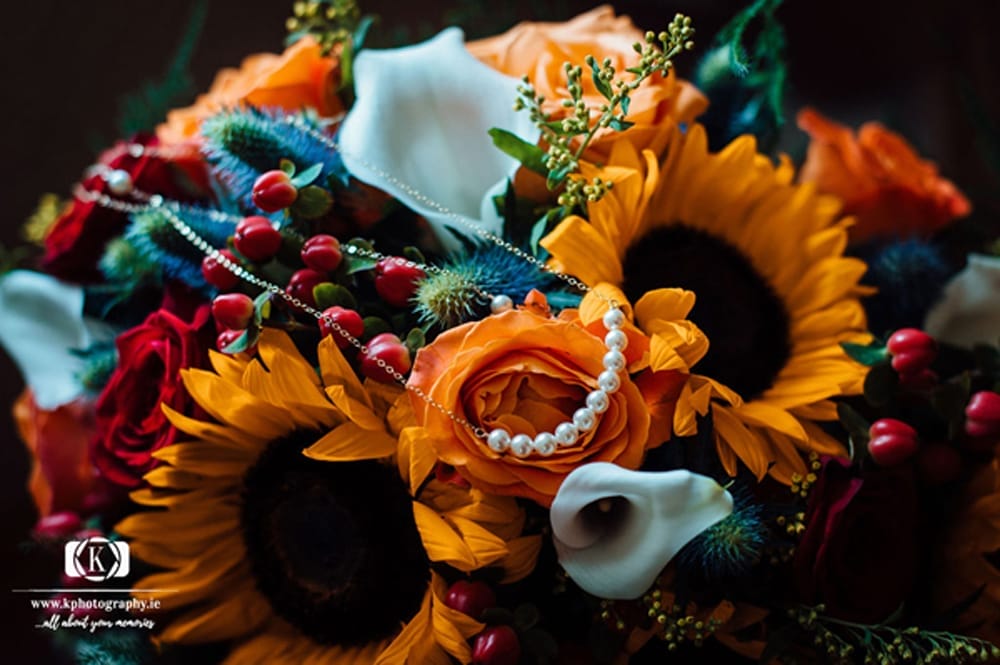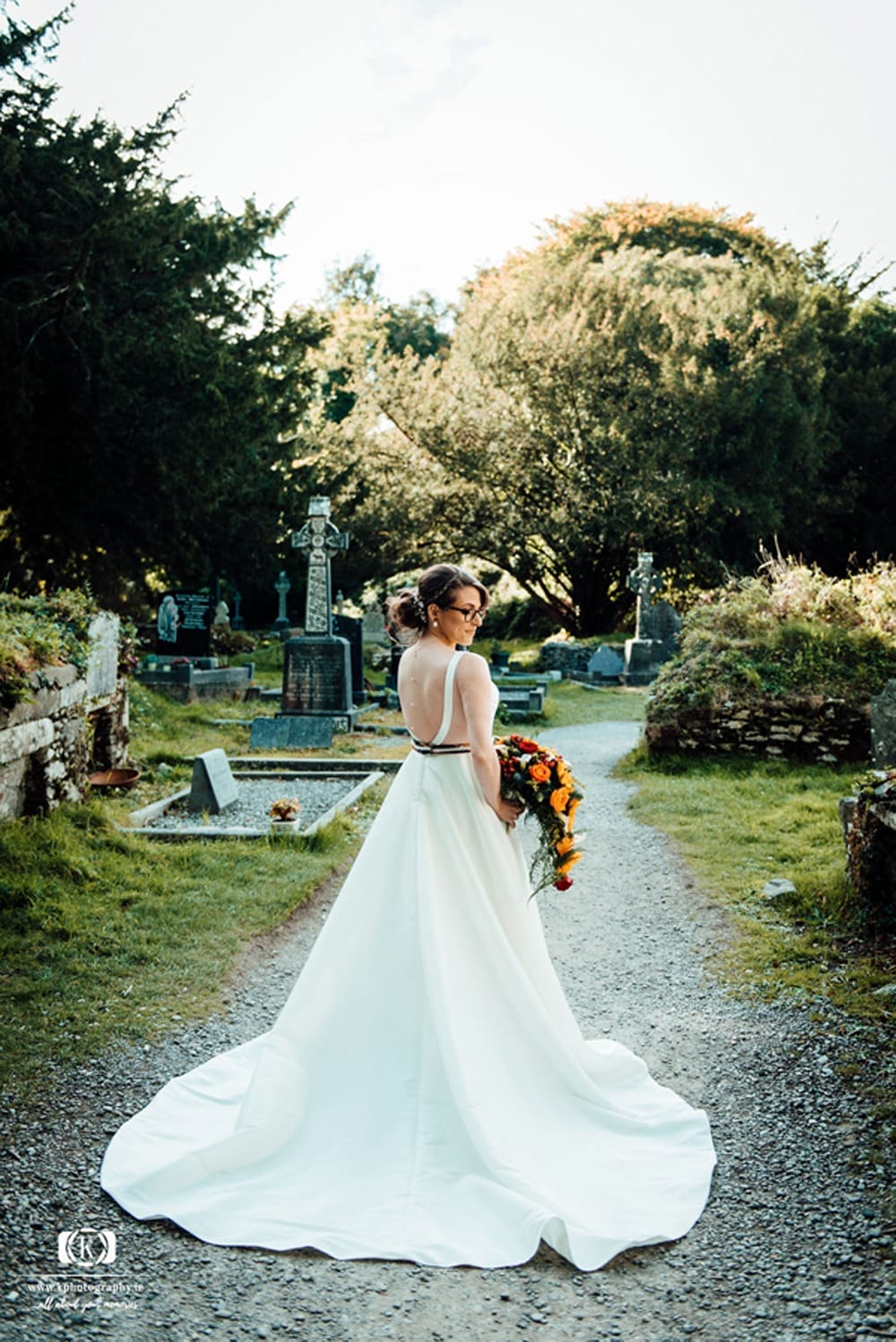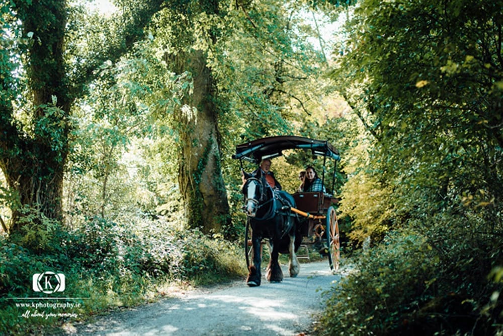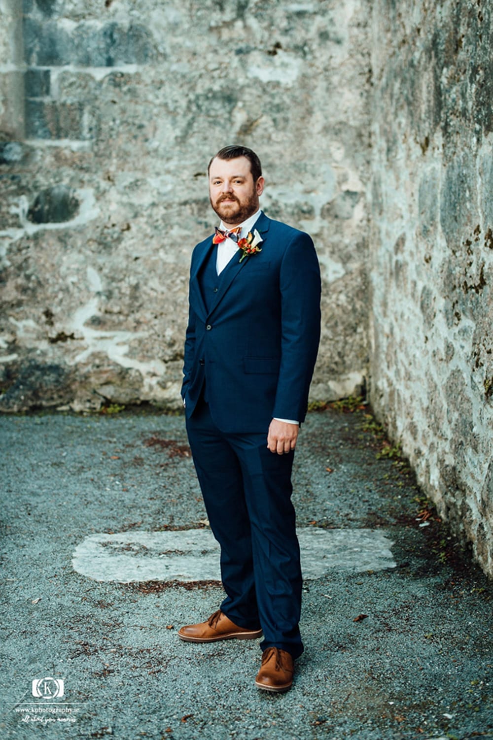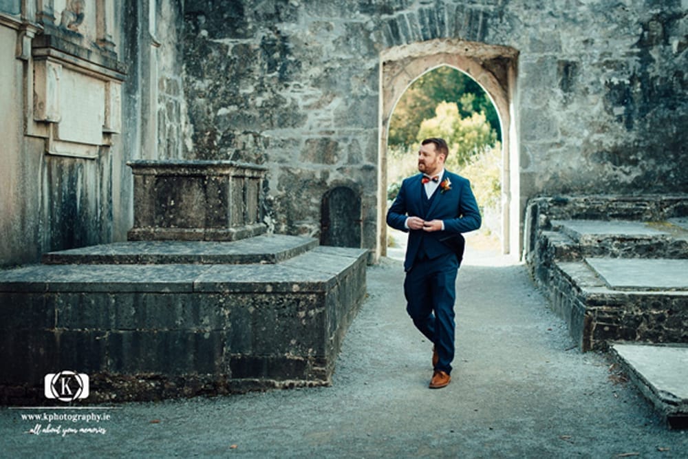 Ginna and Zach knew right off the bat that they wanted an outdoor ceremony, somewhere breathtaking beautiful. A ruin perhaps, somewhere that had its own story, somewhere that you could feel the past while standing on its hallowed ground. Just a short distance from the town itself, Ginna was able to make her way to their altar by horse and carriage a popular way to take in the sights of the area. Wrapped in a blanket provided by the horseman, any Fall chills were kept firmly at bay. The day was a fresh bright one staying light later than many other evenings as though the sun was staying up just for them. A huge thank you as always to our wonderful team on the day, celebrant Ray O’Sullivan, hair and makeup by Sean Taaffe, The bouquet of sunflowers just as she wanted by Every Occasion and pictures by K Photography