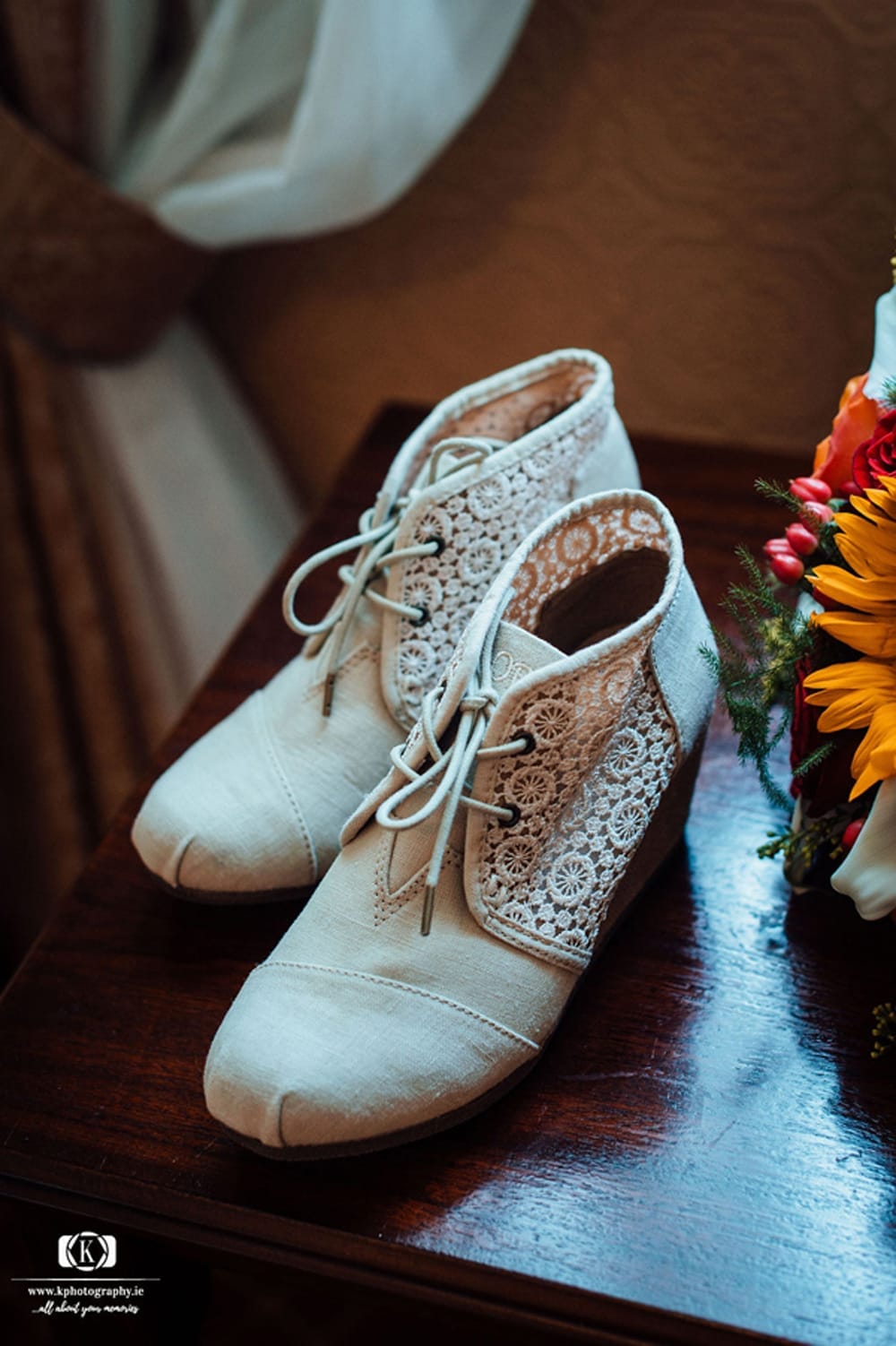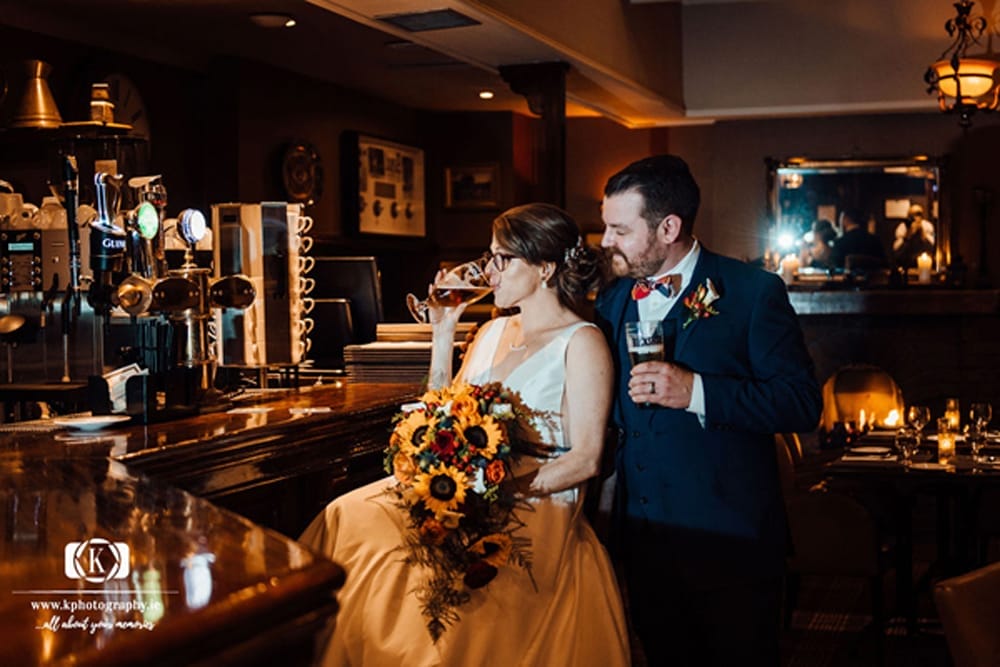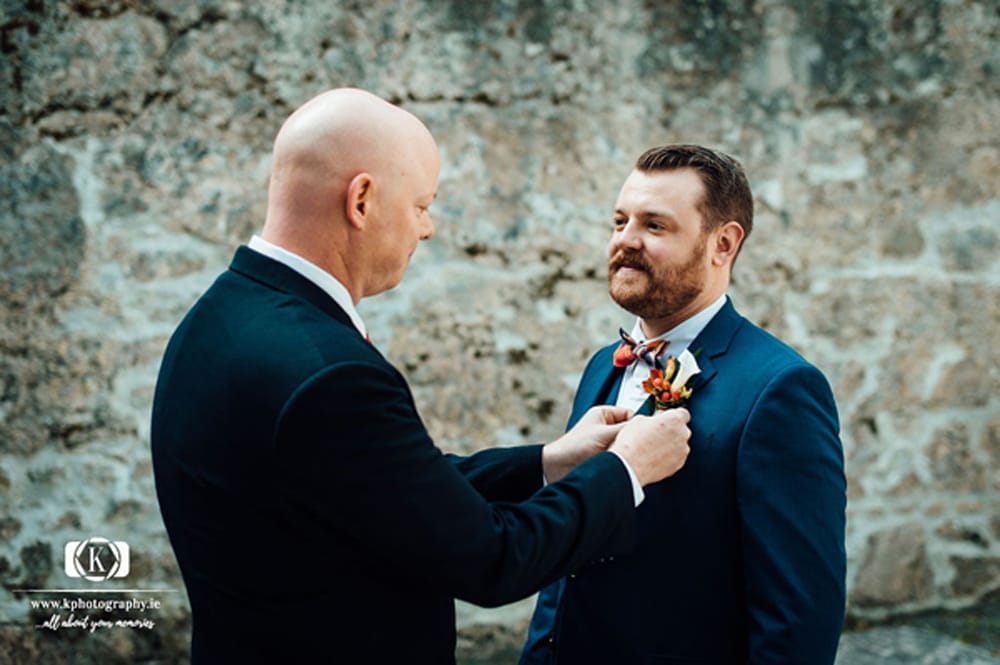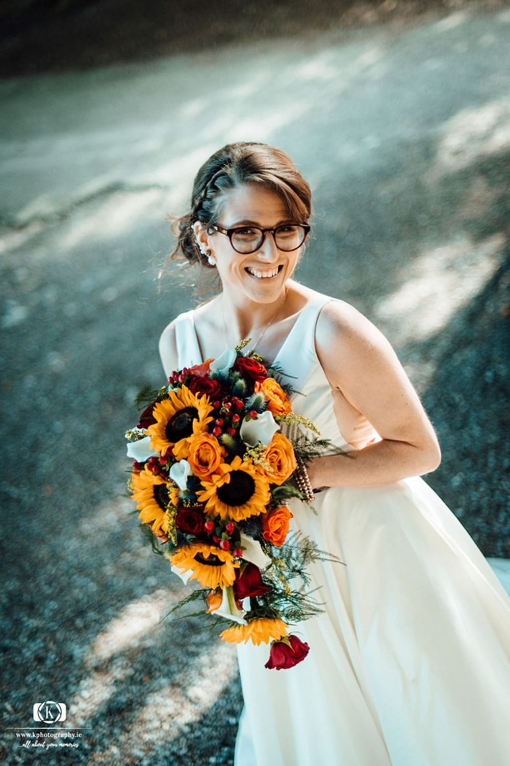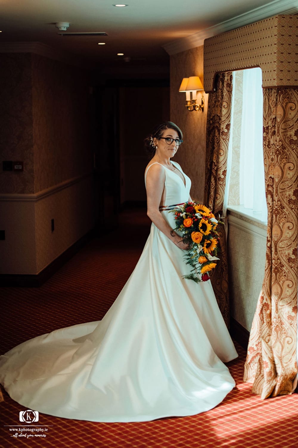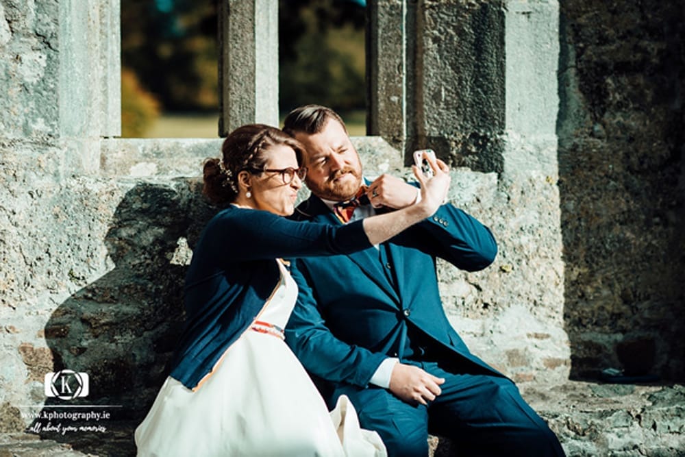 Ginna and Zach knew right off the bat that they wanted an outdoor ceremony, somewhere breathtaking beautiful. A ruin perhaps, somewhere that had its own story, somewhere that you could feel the past while standing on its hallowed ground. Just a short distance from the town itself, Ginna was able to make her way to their altar by horse and carriage a popular way to take in the sights of the area. Wrapped in a blanket provided by the horseman, any Fall chills were kept firmly at bay. The day was a fresh bright one staying light later than many other evenings as though the sun was staying up just for them. A huge thank you as always to our wonderful team on the day, celebrant Ray O’Sullivan, hair and makeup by Sean Taaffe, The bouquet of sunflowers just as she wanted by Every Occasion and pictures by K Photography