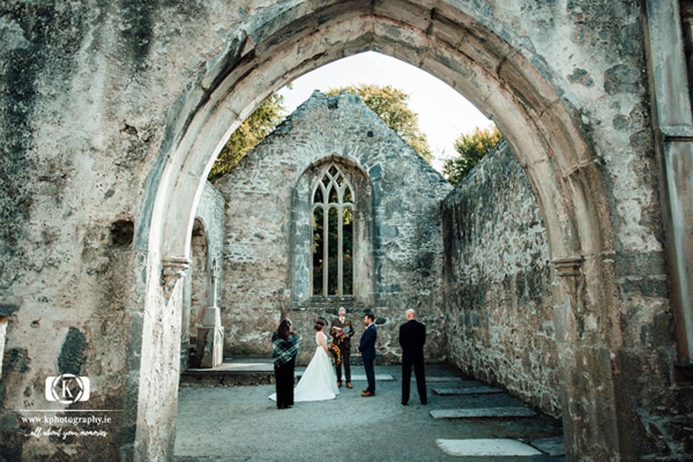 The first day of October 2018 in Kerry was the day Ginna and Zach chose to celebrate their love by Eloping to Ireland, getting married in an ancient abbey ruin. They brought two of their closest friends as witnesses to Killarney the town known in past times as “Beauty’s Home”. A name given, coming from its unrivalled scenery, endless Kerry mountains, lakes including the famous Lough Leane and the stunning waterfall at Torc. One of Ireland’s most visited locations it never fails to enchant those who visit it from near and afar each year.