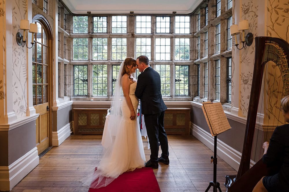 After the ceremony was a champagne toast and a private first dance. Photos around the property then changing dress for a spin in a vintage car to the local pub followed by private dinner in the castle conservatory. A 2 tier wedding cake finished the evening meal in pure romance.
